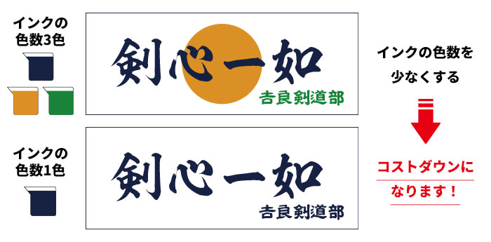できるだけ安く、剣道用の面タオル・面手ぬぐいを反応染めや注染で製作したいとお考えの方には、使用する色数を極力減らすように工夫することをオススメいたします。