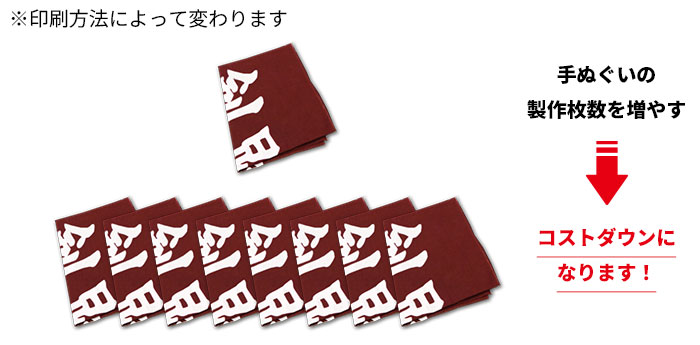 せっかく準備をしたのであれば、できるだけ多数の手ぬぐいを製作したほうが、1枚あたりの製作費用は安くなるのでお得です。