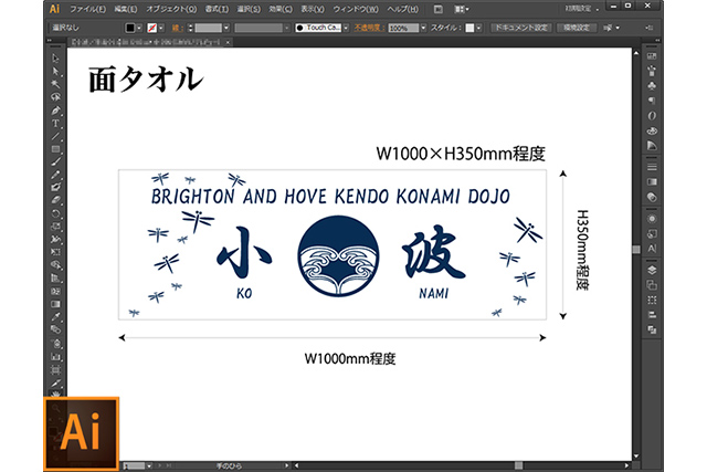 デザインはお客様より完全なAIデータでご入稿いただきました。これを基に、生地やサイズなどの詳細を打ち合わせのうえ、本製作へと移行しました。