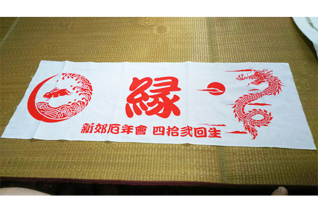 今回は、愛知県名古屋市にございます『新郊中学校』の学区内で行われる厄払い祈願の伝統的なお祭りに向けて、オリジナルデザインの手ぬぐい製作をご依頼いただきました。